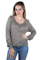 Blusa amplia con cenefa tejida y detalle de deshilachado en el borde. Con manga 3/4 y cuello redondo.