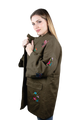 Abrigo blanco con textura brocada, corte largo y cinturón ajustable. Diseño elegante con solapas anchas y bolsillos laterales. Temporada recomendada: otoño e invierno. Uso: ocasiones formales, eventos especiales y looks urbanos sofisticados.