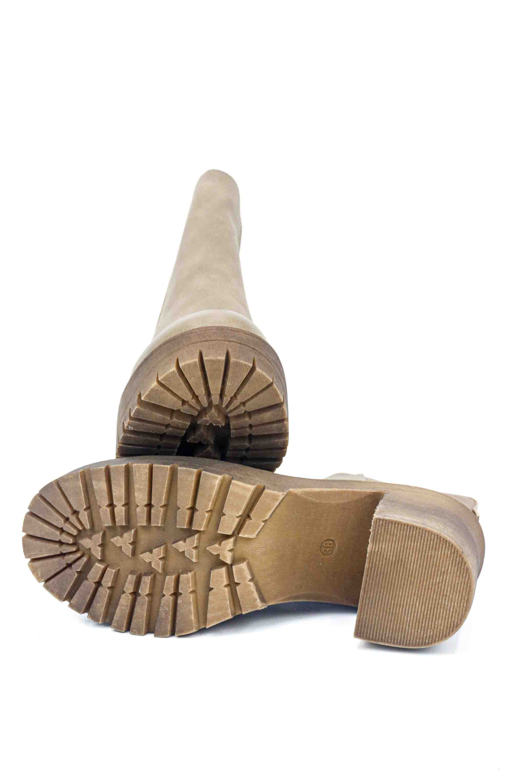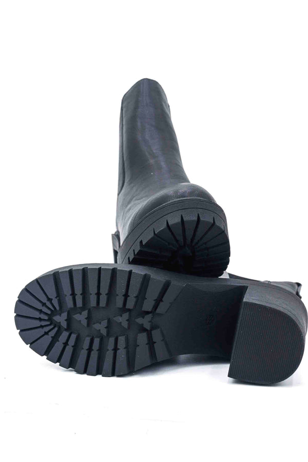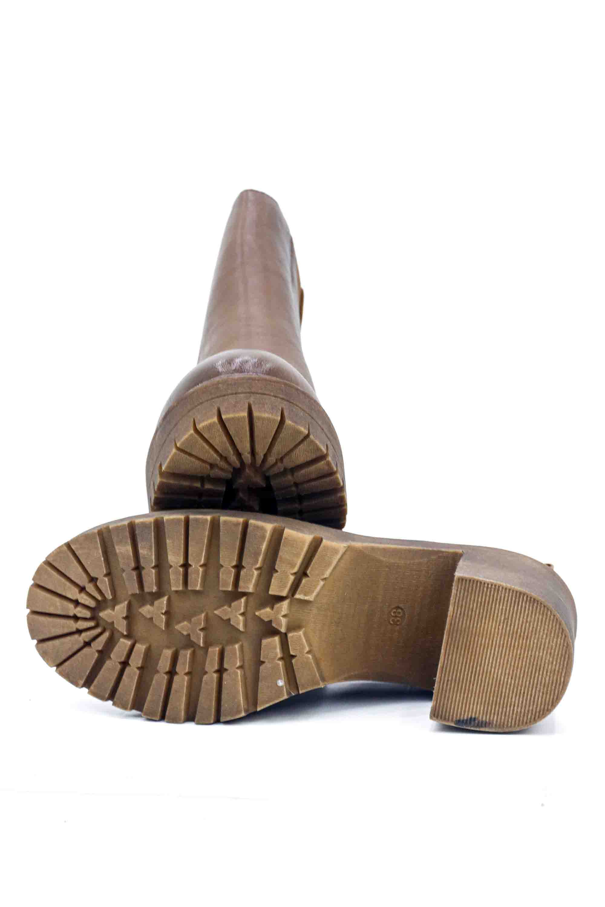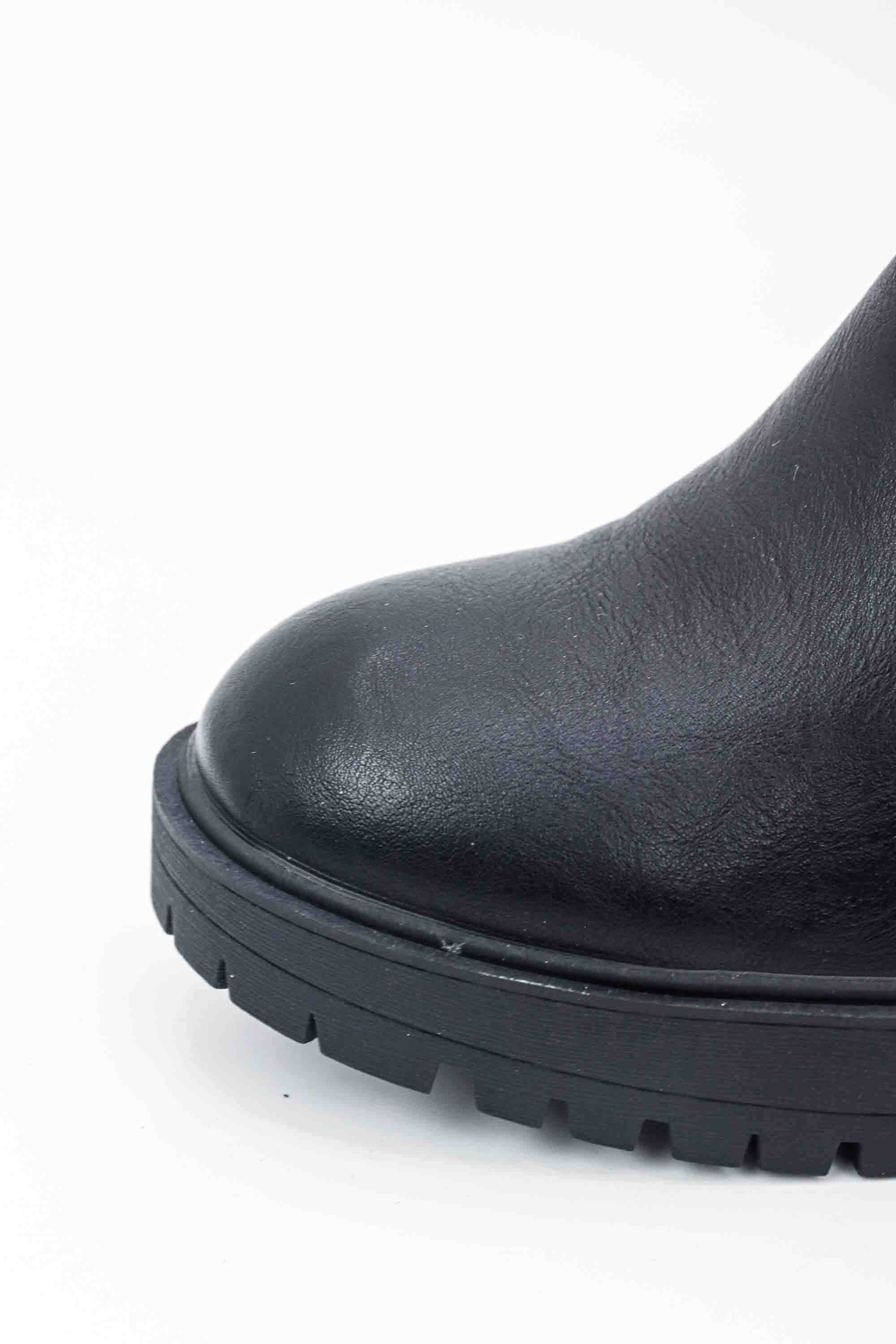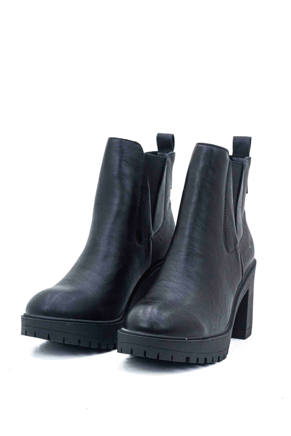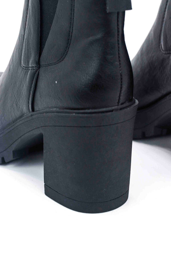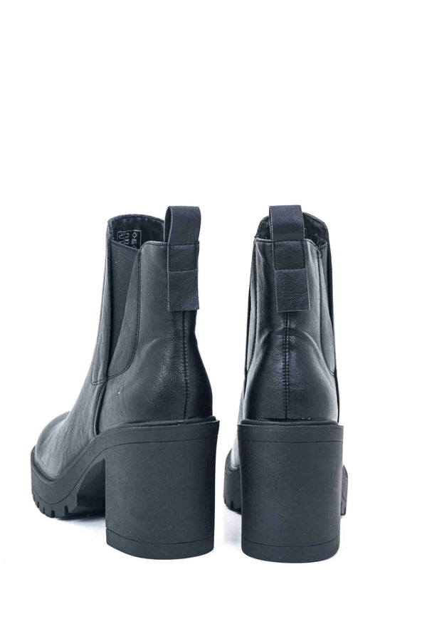 Botín en color topo, negro y marrón con suela dentada y tacón de bloque robusto, diseñados para un uso cómodo y duradero. Su estilo Chelsea, con paneles elásticos laterales, facilita que te los puedas poner y quitar.