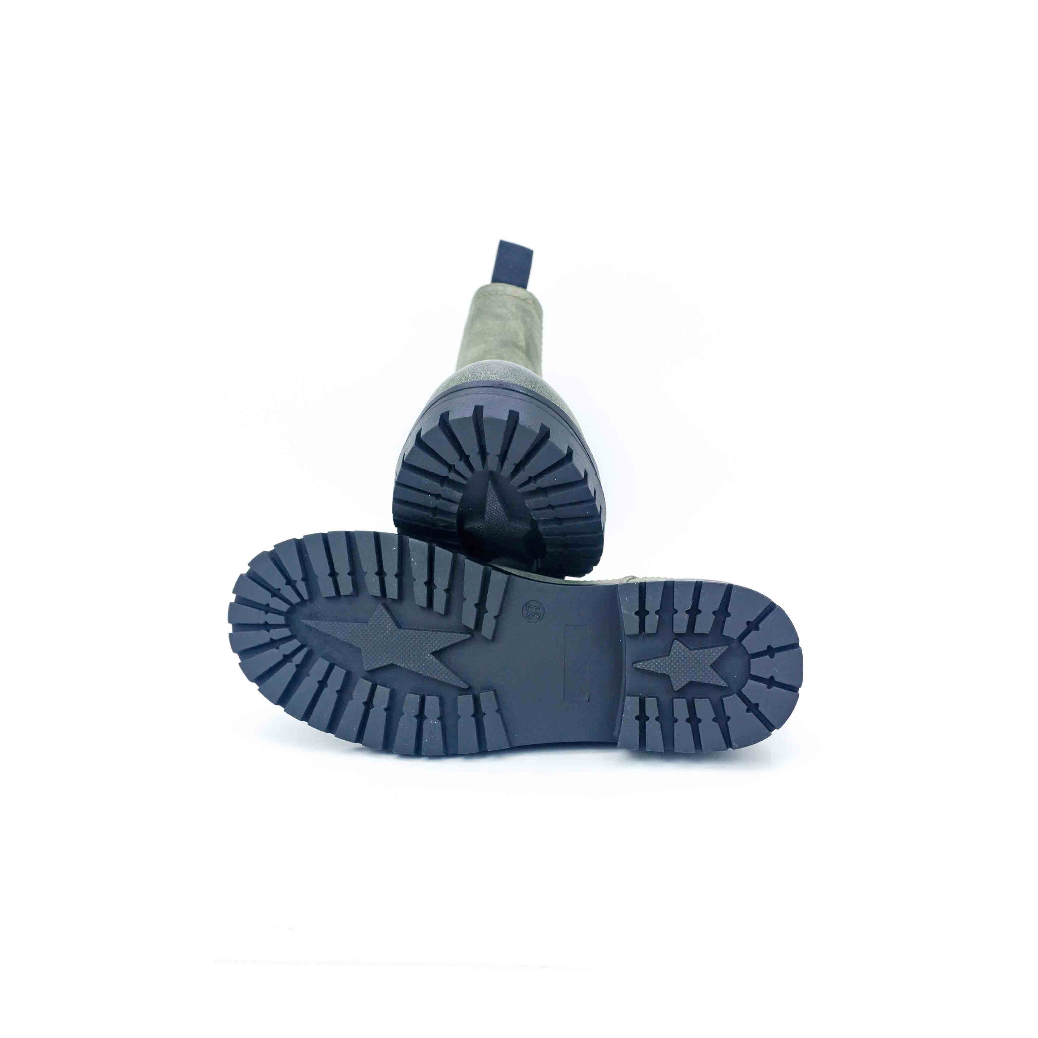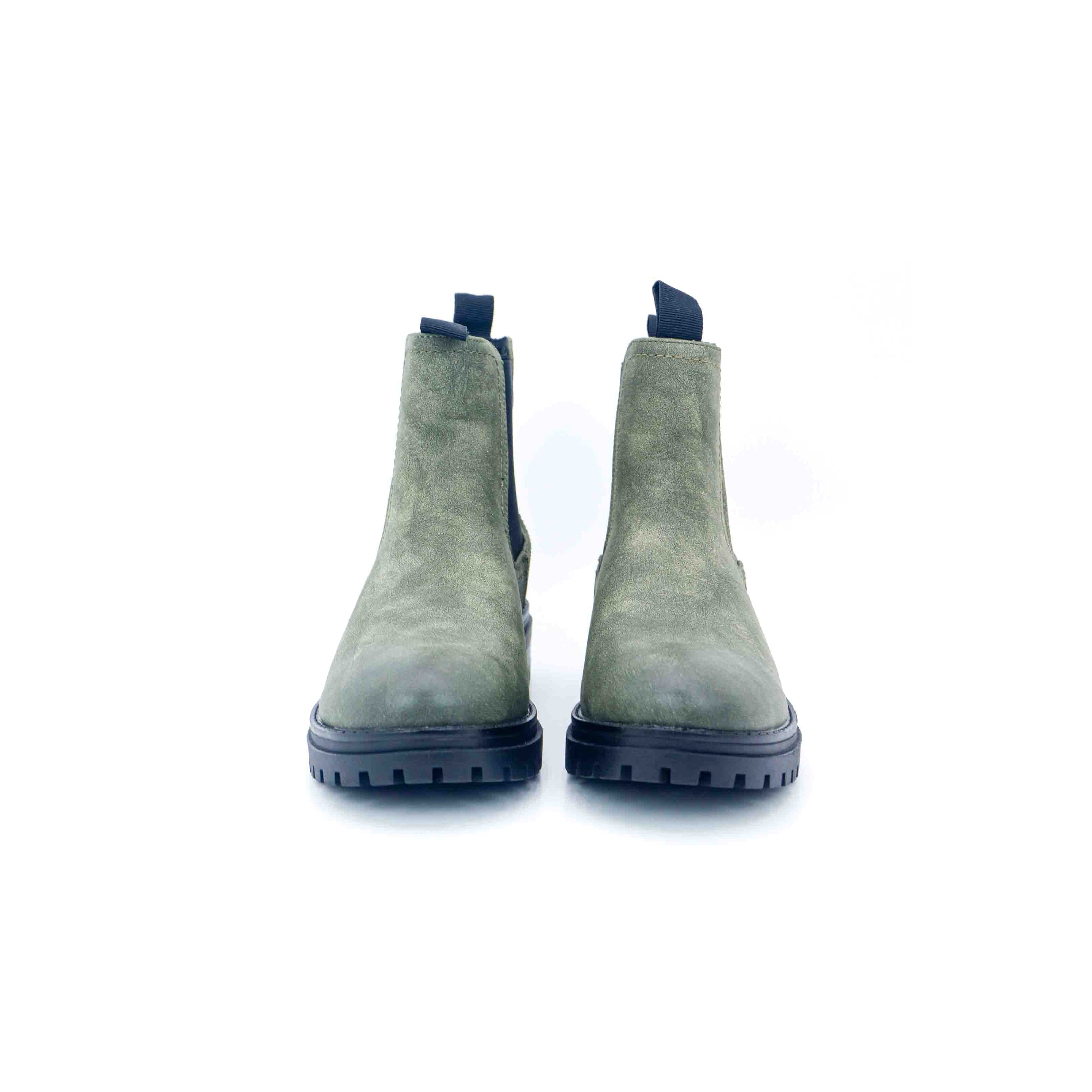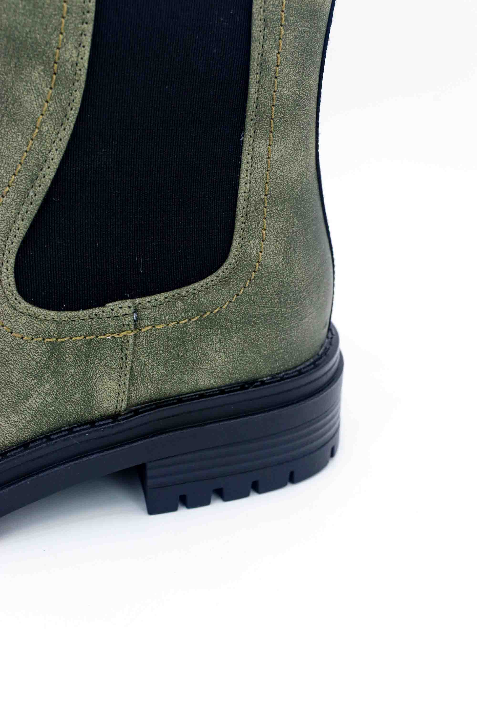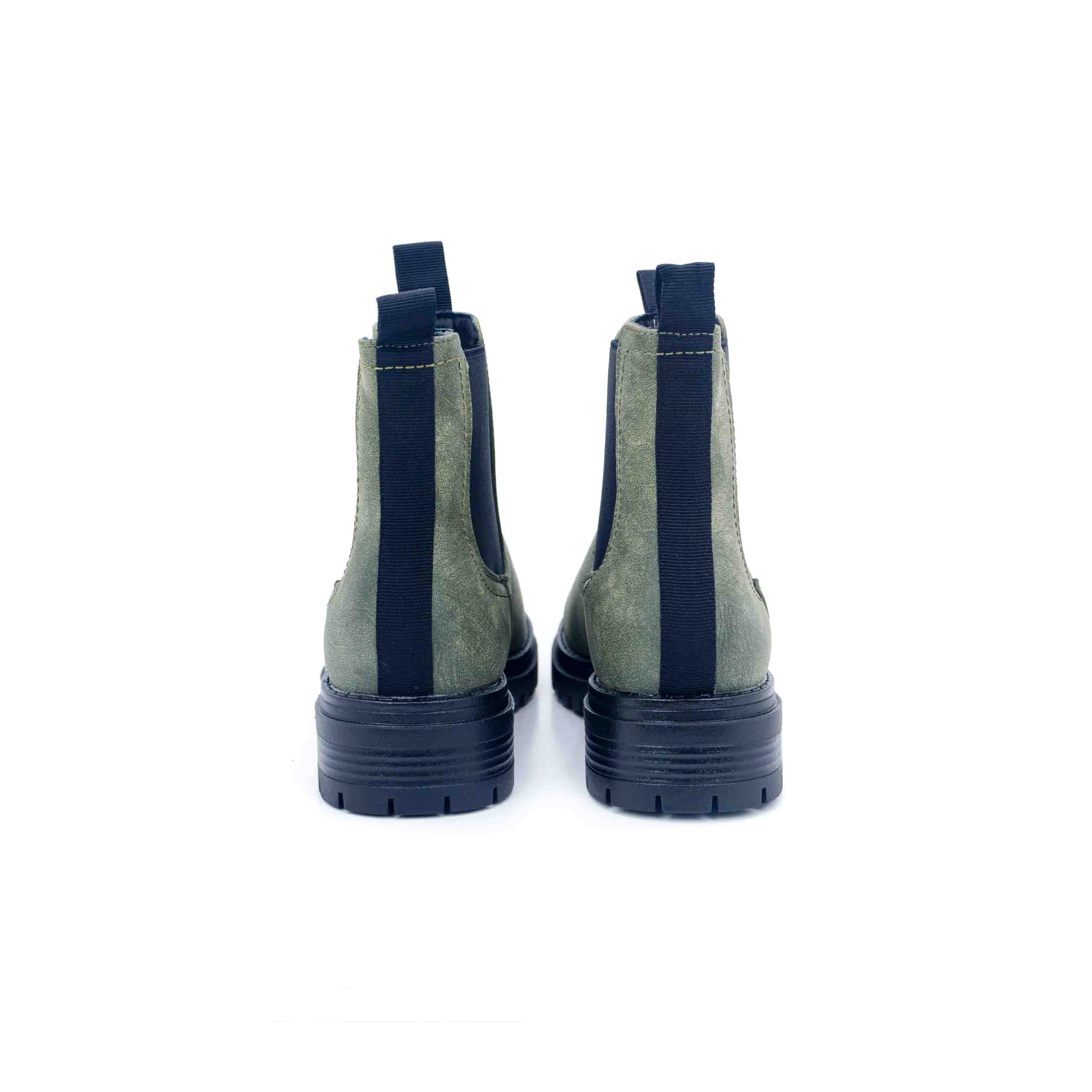 Un estilo atemporal con un toque moderno. Estos botines combinan la clásica banda elástica lateral con una suela track dentada para un look vanguardista. El acabado envejecido del material les da un toque de personalidad, ideales para un estilo diario y urbano.