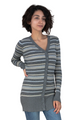 Chaqueta de punto de terciopelo con botones y adorno de pedrería en el cuello. Cintura y puños acanalados.