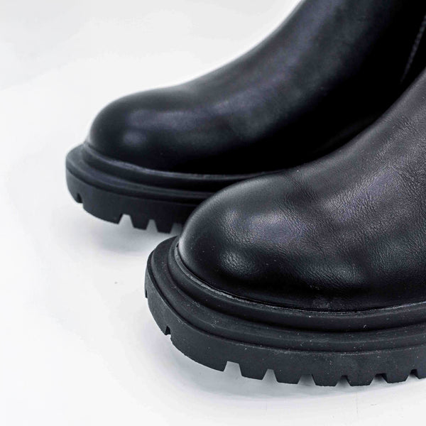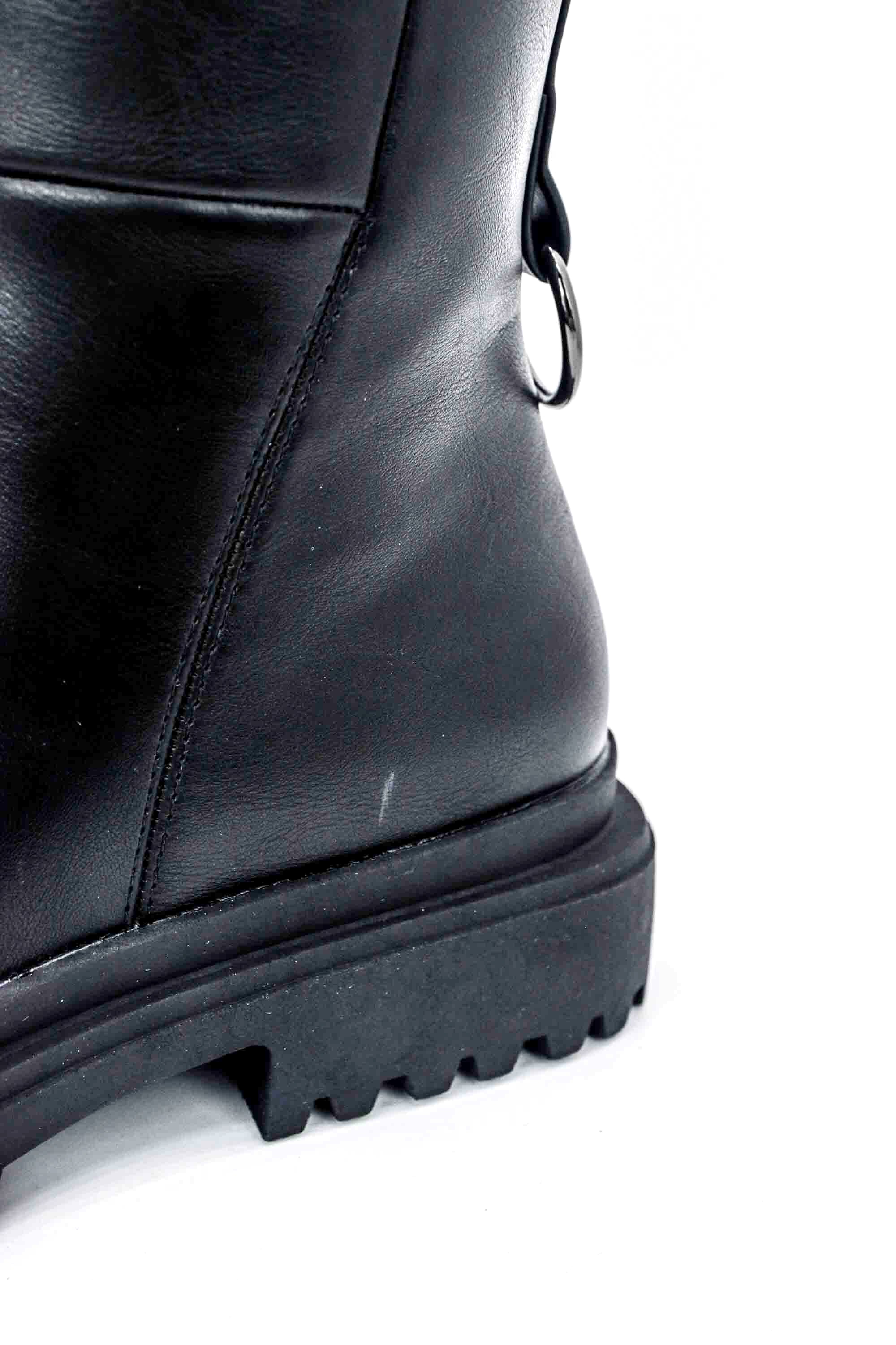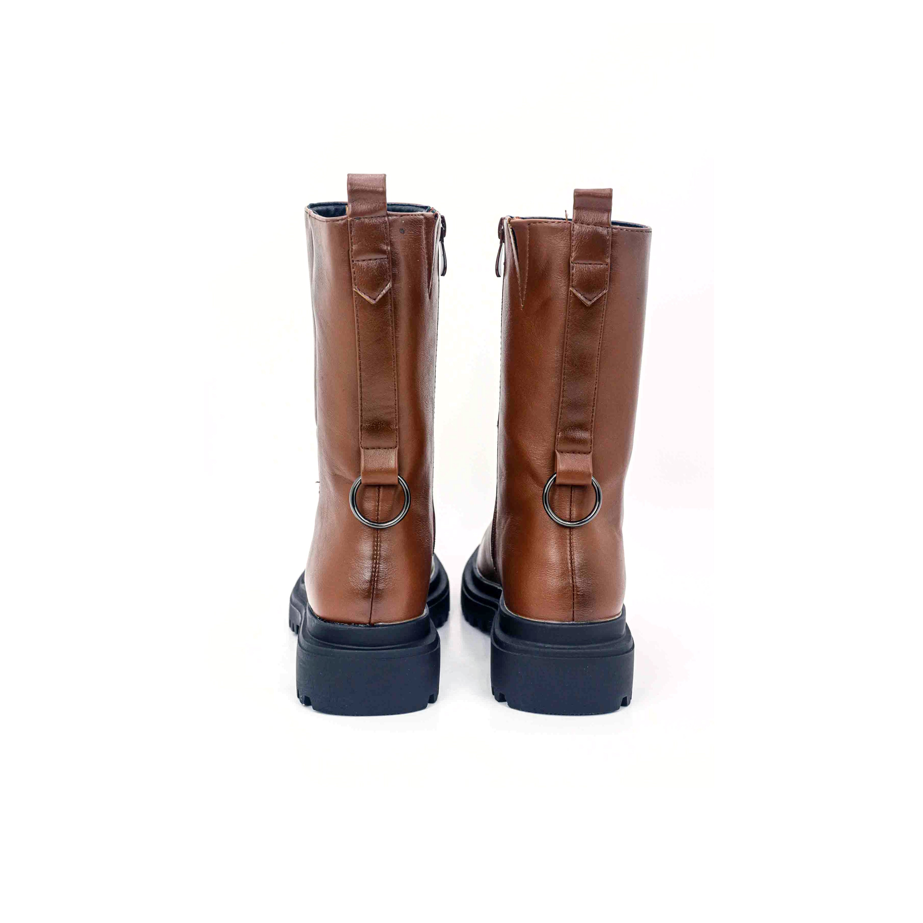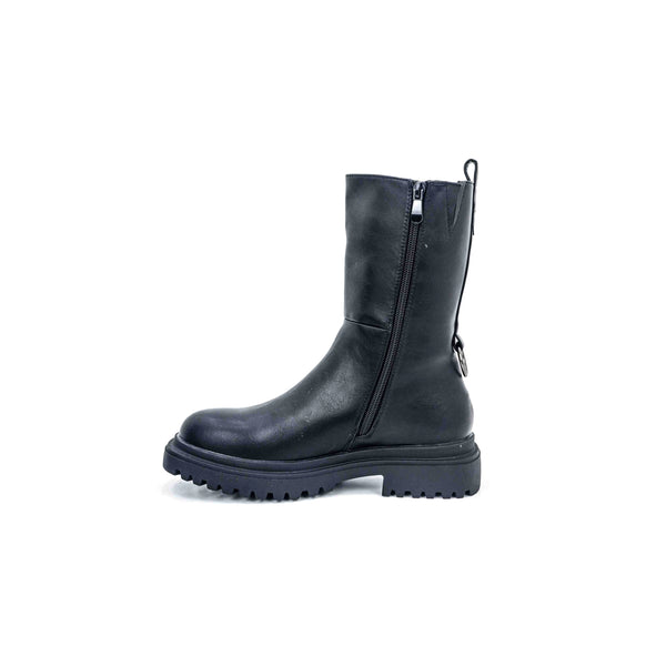 Estas botas combinan el estilo militar con un toque de modernidad. La suela track dentada te da agarre y un look robusto, mientras que el anillo metálico y la trabilla en la parte trasera añaden un detalle distintivo. La cremallera lateral permite un ajuste fácil y seguro. Disponibles en negro y marrón para que puedas elegir el que mejor se adapte a tu estilo.